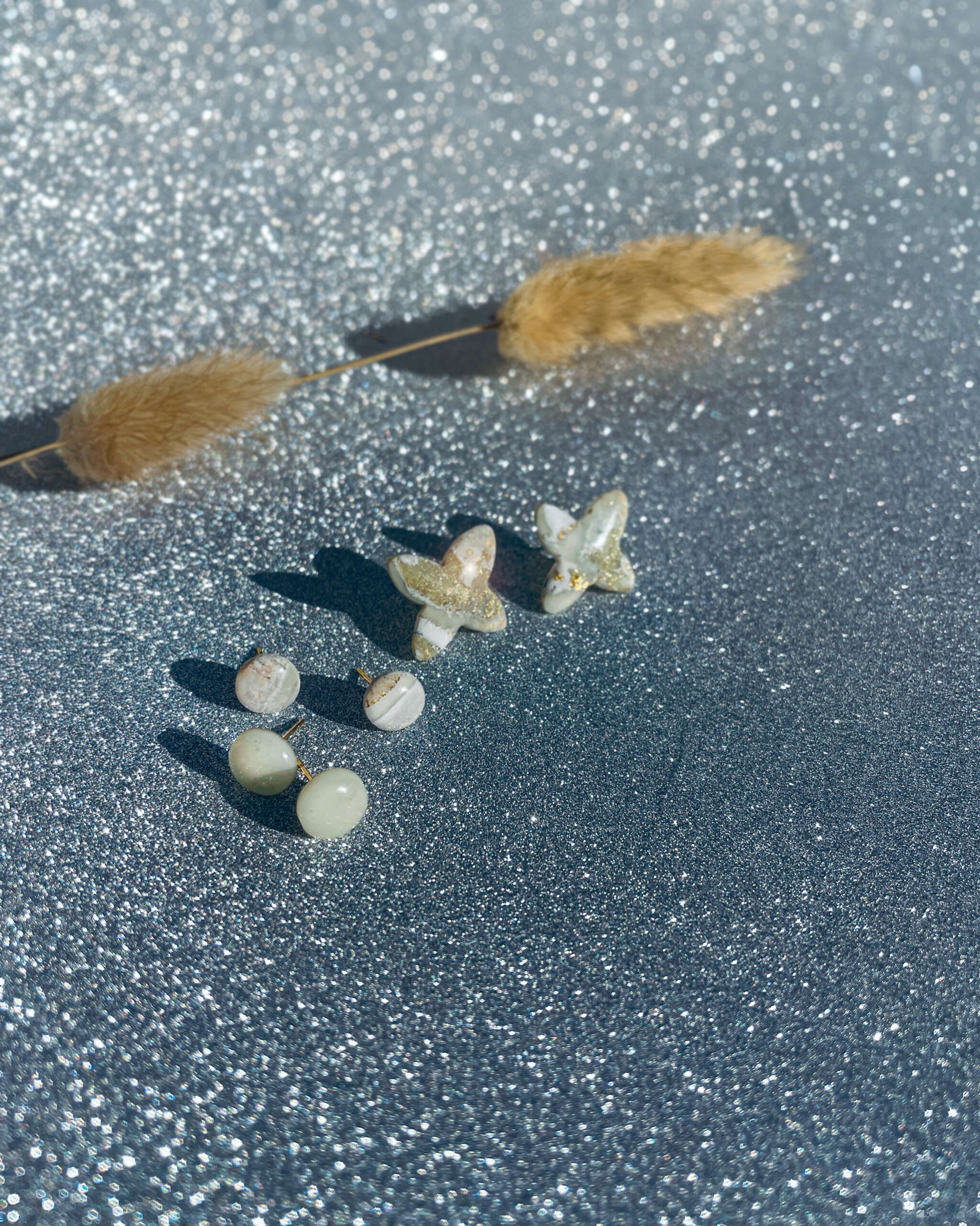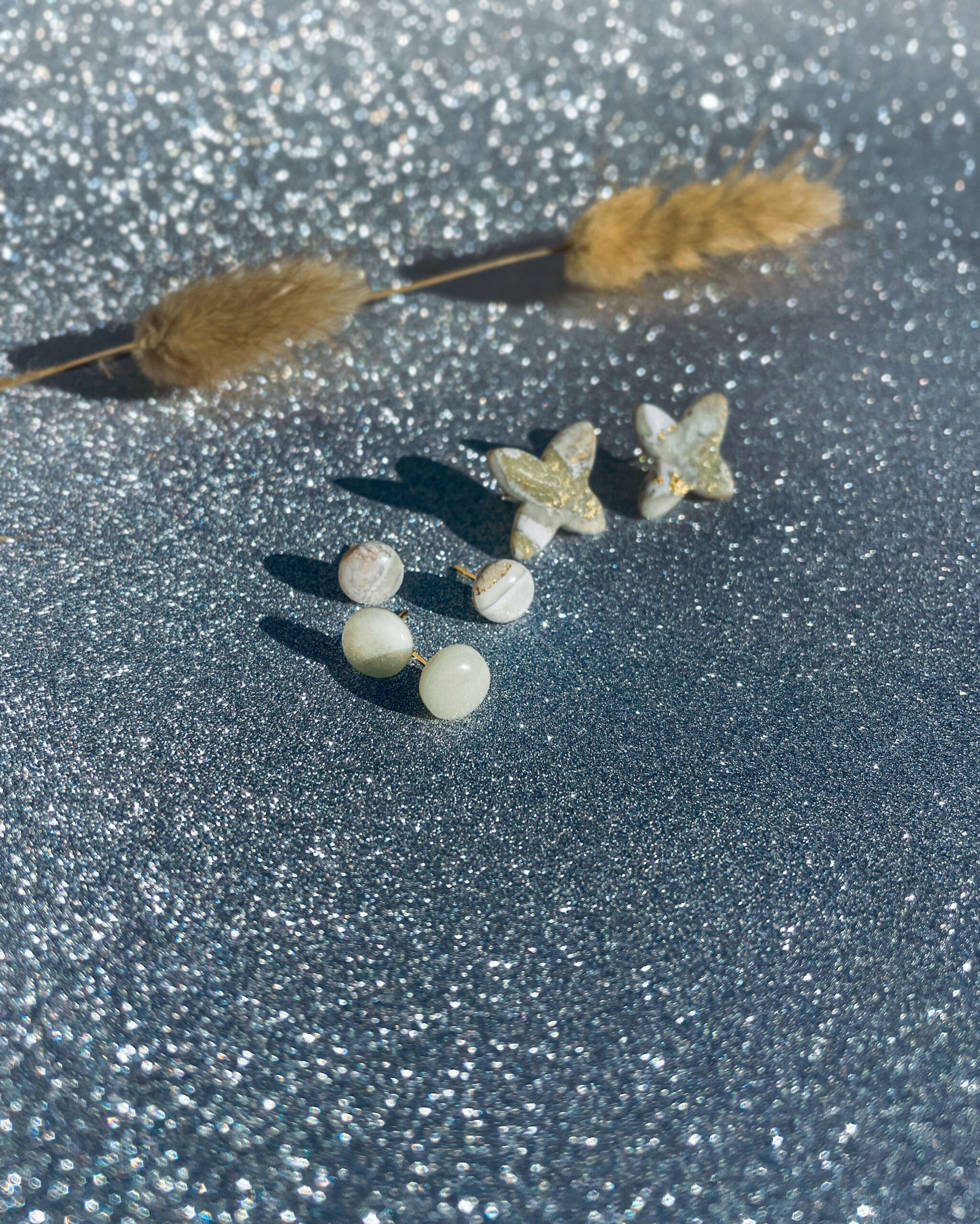 Handcrafted with radical artistry using Polymer Clay, each pair is sealed with UV Resin and adorned with 24K Gold Plated Surgical Stainless Steel Blank Studs.