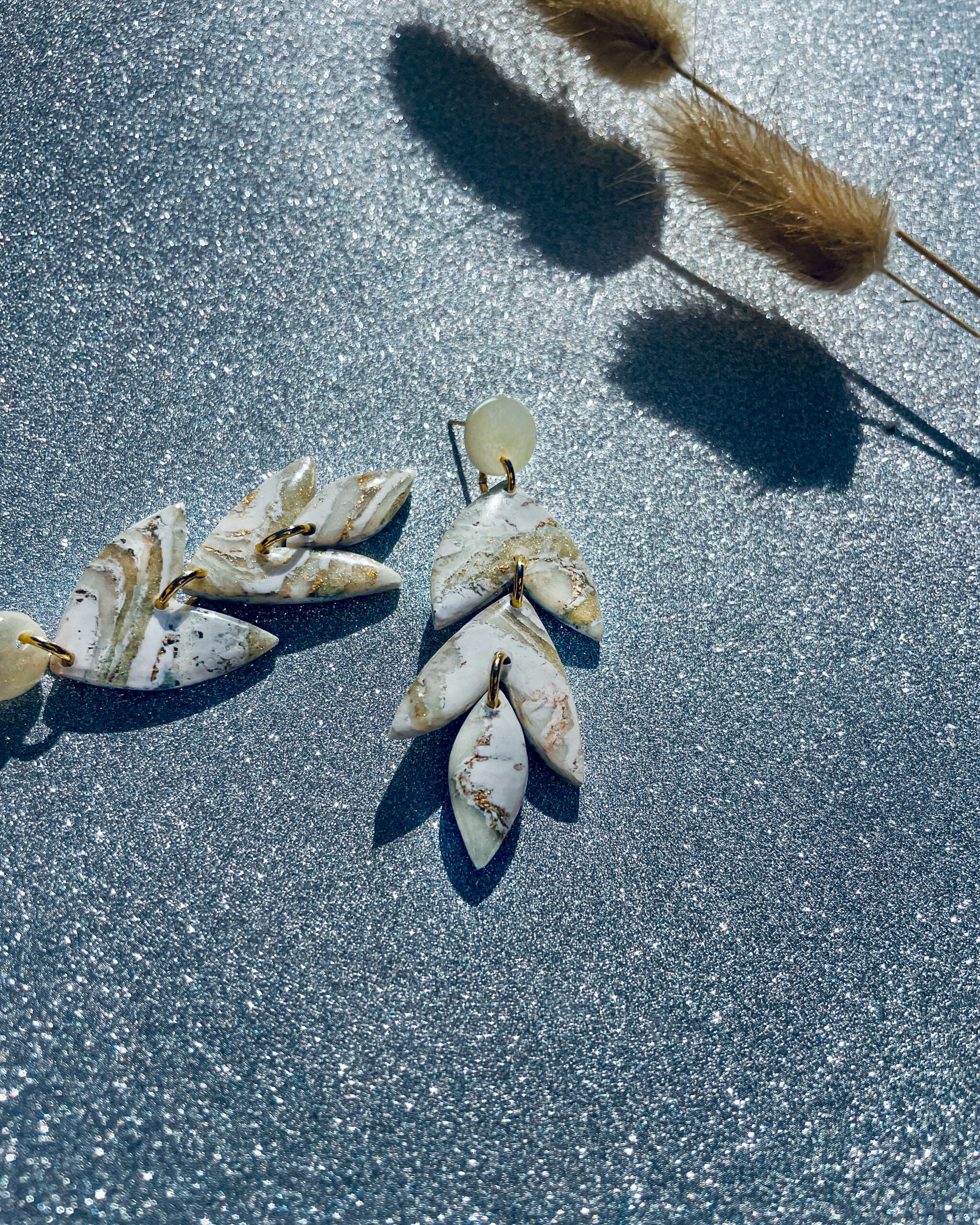 Crafted with utmost care, this pair is handmade using Polymer Clay, sealed with UV Resin and adorned with 24K Gold Plated, 304 Stainless Steel Findings.